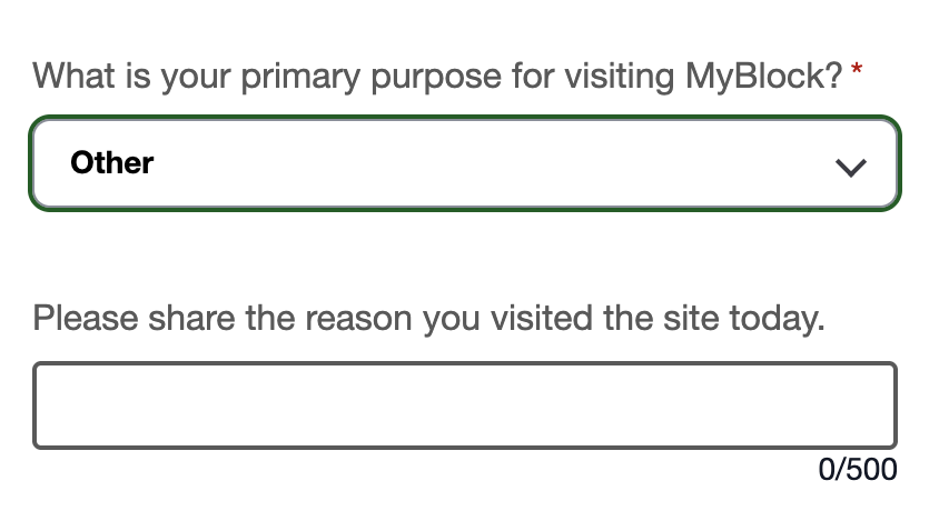 What my role did allow, though, was to change the copy for the survey so that we could better track when users come to MyBlock to seek help for their software woes.